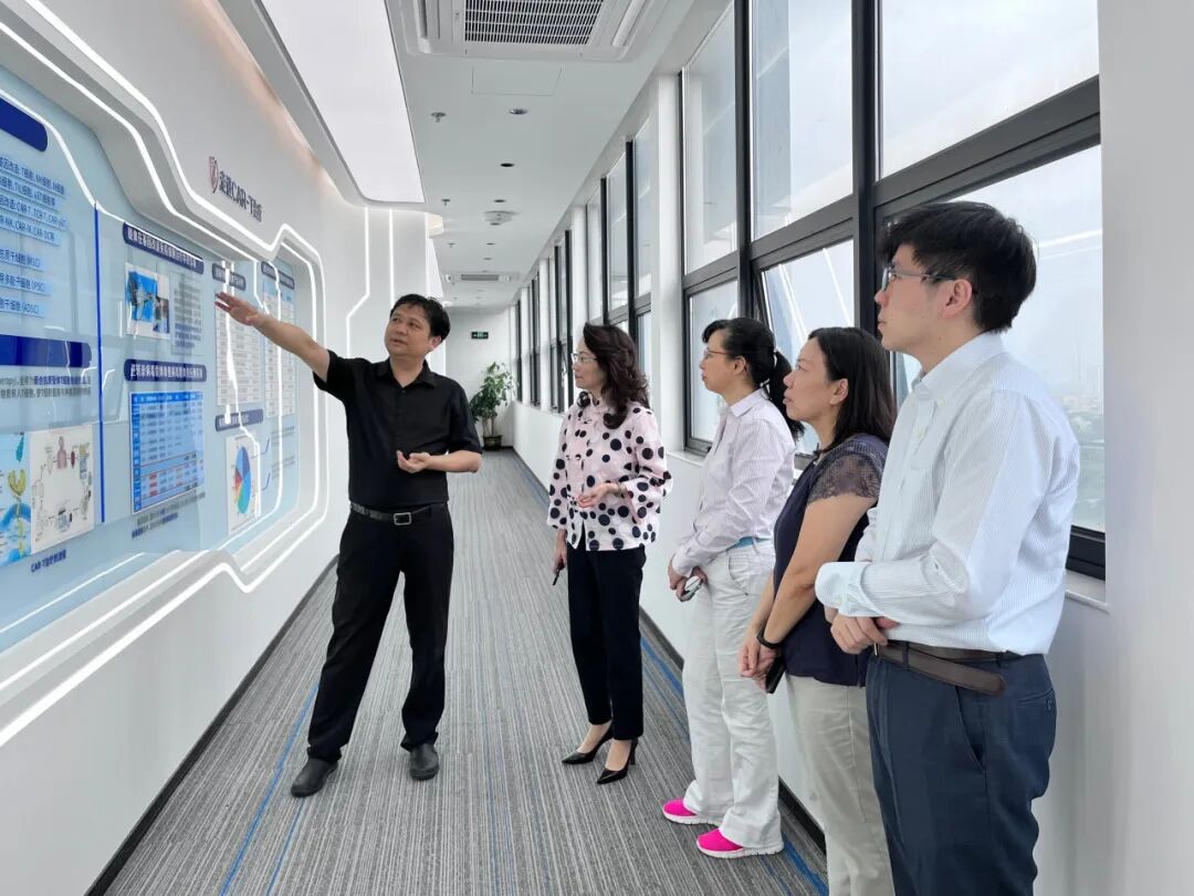 访客团在史渊源董事长的引领下,对深圳evo真人视讯的数字智慧展厅、GMP研发生产实验室以及质量管理实验室进行了参观,实地分析了深圳evo真人视讯细胞治疗领域的最新研究成果和实验室布局。