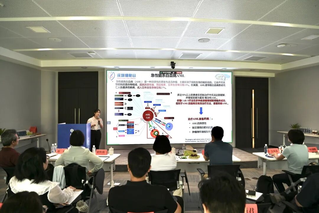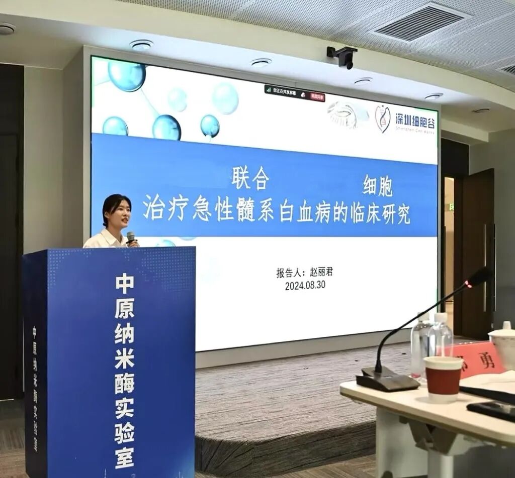 赵丽君部长以CAR-T细胞治疗急性髓系白血病的临床研究为主题进行了汇报。她详细介绍了深圳evo真人视讯研发团队在CAR-T细胞治疗急性髓系白血病项目的最新研究成果,以多种形式展现了其在提升疗效和降低副作用方面的显著优势。