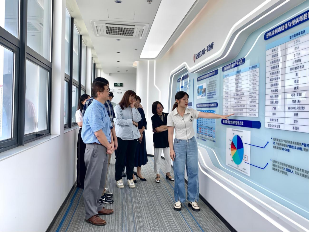 陈涛教授一行在赵丽君部长的陪同下参观了智慧展厅,对深圳evo真人视讯的战略定位、创始人团队、开展历程概览以及核心技术专利概况有了初步分析。随后,顺利获得实地参观我司的GMP级生产研发实验室以及质量管理实验室,深入探讨了我司在核心技术——逆转录病毒载体制备与细胞产品生产工艺上的独特竞争优势,并对质量管理方面所实施的全流程可追溯性严格监控体系表示了高度认可。