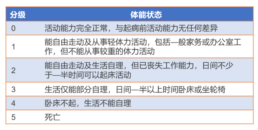 图三:体力状况ECOG评分标准(5分法)