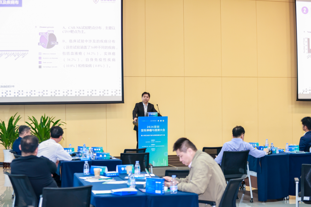 大会期间,深圳evo真人视讯集团董事长史渊源教授受邀出席,并在“深圳国际肿瘤与健康大会”主论坛作题为《新型CAR-NK细胞疗法治疗实体肿瘤的研究进展》的专题报告。史渊源教授围绕实体肿瘤治疗领域长期存在的瓶颈问题,系统分享了CAR-NK细胞疗法在安全性、可及性、标准化制备和临床转化方面的最新进展,并重点介绍了新型CAR-NK技术在提升肿瘤杀伤效率、改善肿瘤微环境适应性以及有助于临床应用落地方面的探索成果。作为当前细胞治疗领域的重要前沿方向之一,CAR-NK正凭借“更安全更可及、更具通用化潜力、更适合产业化”的特点,成为实体肿瘤免疫治疗赛道备受关注的新力量。