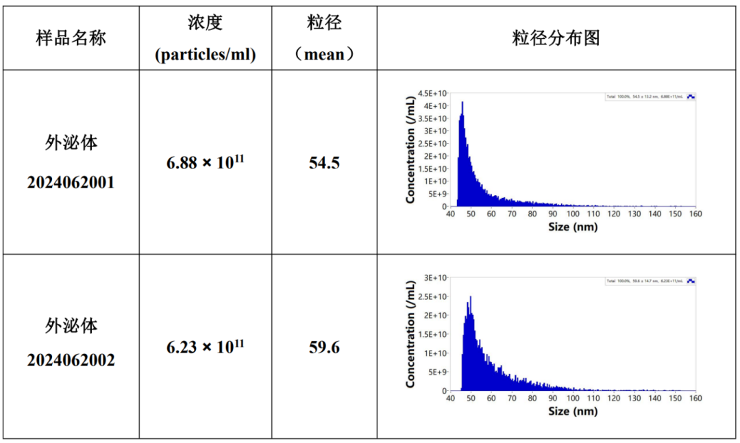 同时,用纳米流式检测仪检测外泌体的粒径、浓度,外泌体大小均一,符合鉴定标准。